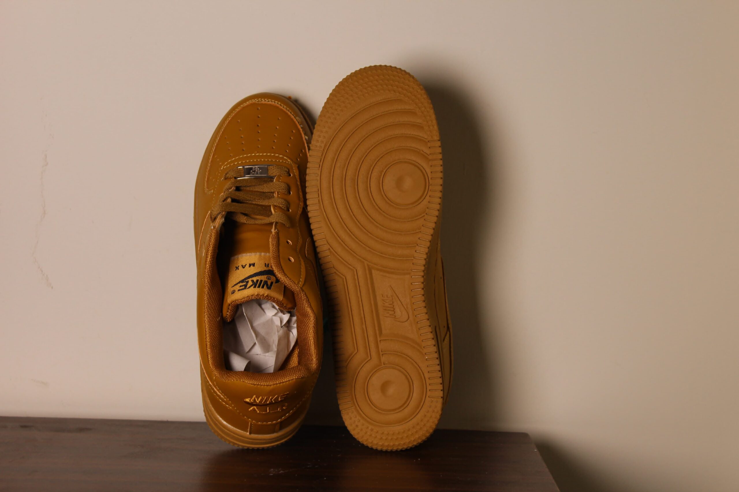 The Nike Air Force 1 “Wheat” (also known as “Flax”) is a popular, work boot-inspired variation of the classic sneaker, featuring a monochromatic brown upper, rugged details, and a gum rubber outsole for a distinct autumnal look.