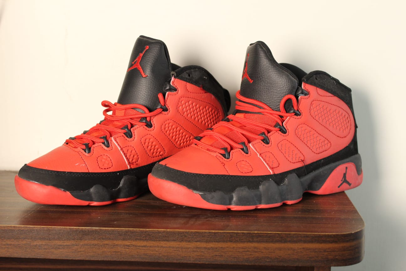 The Air Jordan 9 “Motorboat Jones” is one of the most sought-after installments from the iconic “Johnny Kilroy” pack, released in 2012. This collection celebrated Michael Jordan’s first retirement by bringing his fictional alter-egos to life. Representing the Billings Bandits, the “Motorboat Jones” colorway is arguably the most aggressive and eye-catching of the entire series.The sneaker features a vibrant Challenge Red upper crafted from premium durabuck, providing a rich, velvety texture. Contrasting black accents on the tongue, laces, and midsole balance the intensity of the red, creating a classic “Bred” aesthetic with a modern twist